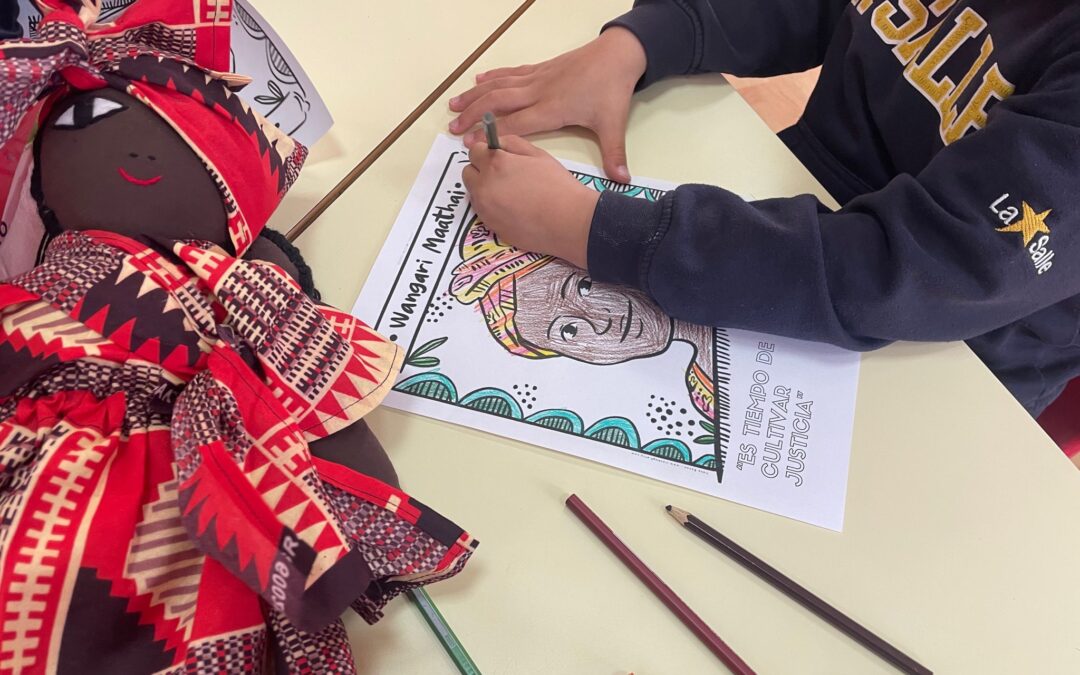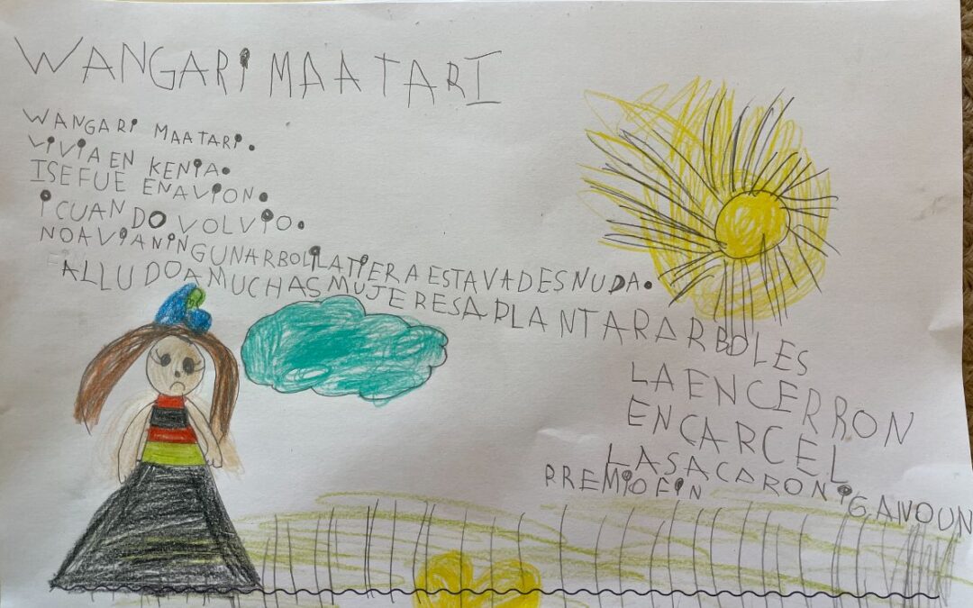 A través de un cuento, los alumnos han podido conocer a esta maravillosa mujer keniata que sirvió de ejemplo para muchísimas mujeres del mundo entero. Una mujer ecologista pionera en Kenia, activista y fundadora del movimiento Cinturón Verde.