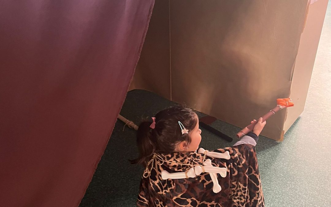 Nos pusimos manos a la obra hasta descubrir, con la colaboración de las familias, que dichos restos pertenecían a la Prehistoria. A partir de entonces, los espacios-Proyecto de cada clase se transformaron en cuevas y los grupos, en clanes.