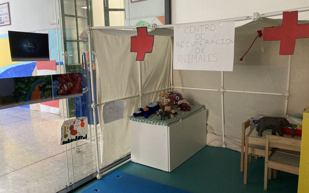 A través del juego simbólico, cuentos y canciones, los niños aprendieron sobre la importancia de los recursos naturales, como el agua y la luz del sol para el desarrollo de la vida tanto plantas como animales. Recordamos la importancia de ahorrar agua al cepillarse los dientes o el apagado de luces y electrodomésticos innecesarios, fomentando así la responsabilidad individual y colectiva. El espacio proyecto de cada clase se transformó en un hospital de animales, un pequeño invernadero donde cultivar plantas y un laboratorio para investigar el ciclo de la vida.