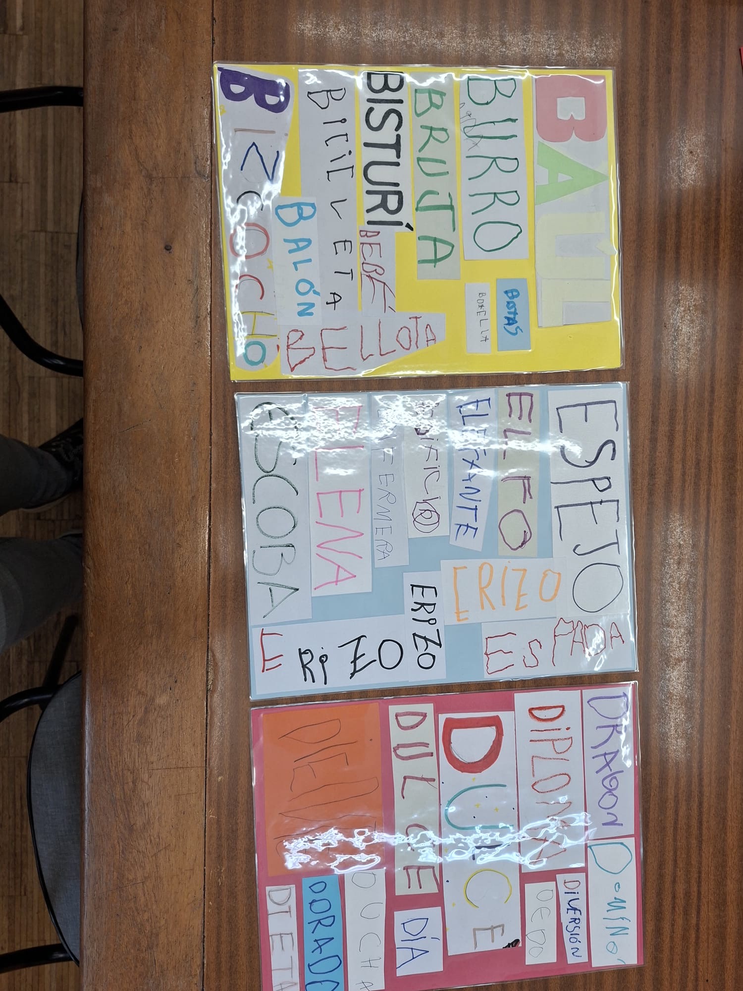 - Dictados de vocabulario a partir de dichas plantillas (discriminación y lectura).