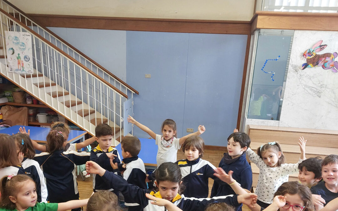 Para ello, hemos ido introduciendo, el ritmo y la coordinación a través de sencillas coreografías , rimas y gestos en la adquisición, asentamiento y repaso de vocabulario y estructuras nuevas (en inglés, y también en diversos momentos de aprendizaje en los entornos, interniveles y en diferentes momentos especiales también).